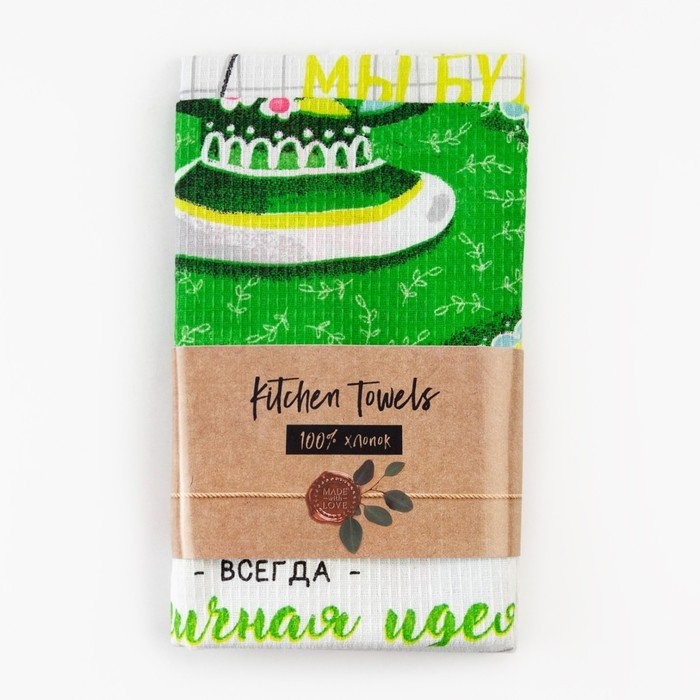 Набор кухонных полотенец Доляна «Чаепитие», 35х60см-2 шт, 100% хл, вафля 160 г/м2