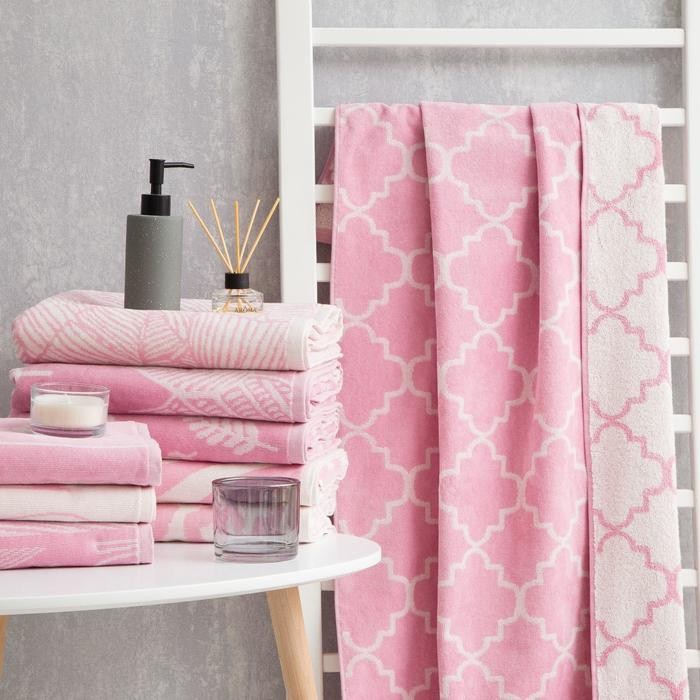 Полотенце махровое Этель Ornament розовый, 70×130 см, 100% хл, велюр, 420 гр/м2