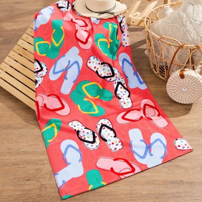 Полотенце «Розовые сандали» 70*140 см, велюр/махра 350гр/м2, 100% хлопок