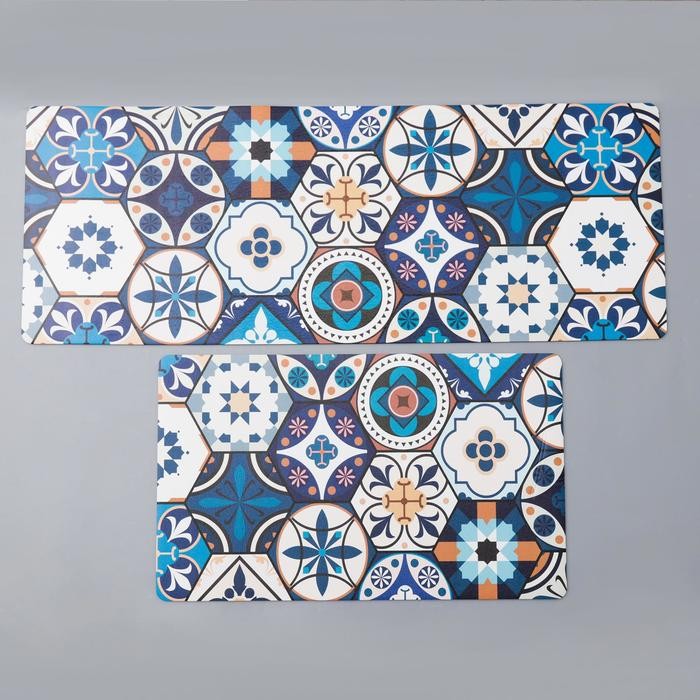 Набор ковриков для ванны и туалета Доляна «Мистери», 2 шт: 45×75, 45×120 см, цвет синий
