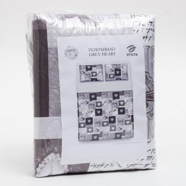 Комплект «Этель» Grey heart, покрывало 180×220 ±5 см и наволочки 50×70 — 2 шт, микрофибра