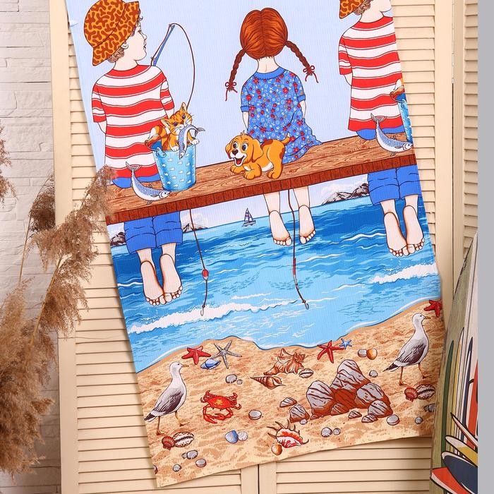 Полотенце — Панно вафельное Рыбалка рис 35017, (пакет) 80×150 см, хлопок 100%, 170г/м2