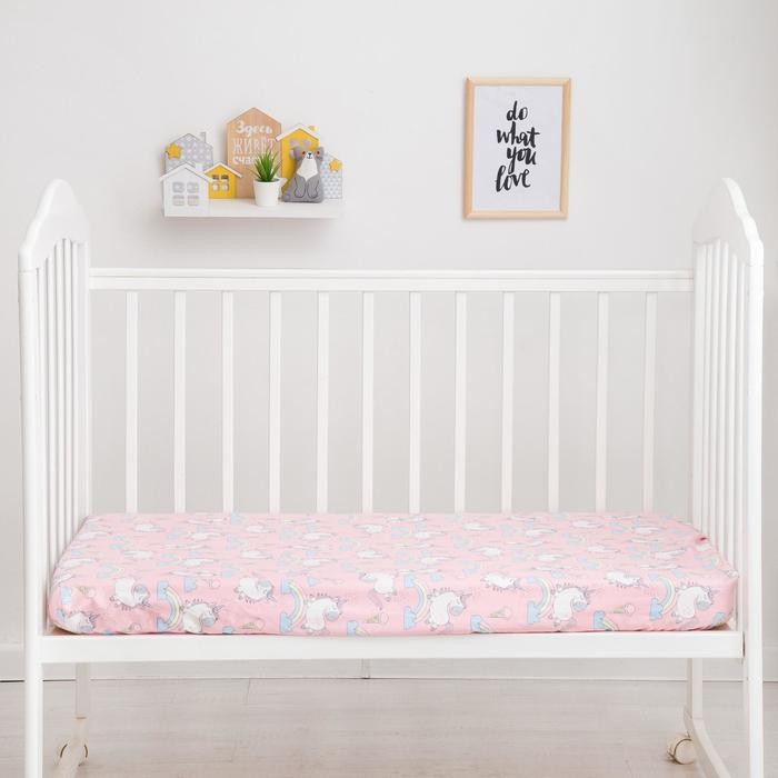 Простыня на резинке «LoveLife» Радужные единороги 60*120+20 см, 100% хлопок