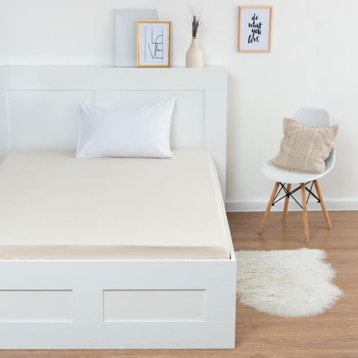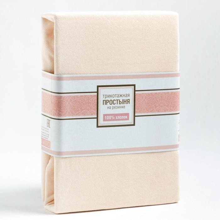 Трикотажная простынь на резинке 160х200х25см, бежевый кулирка
