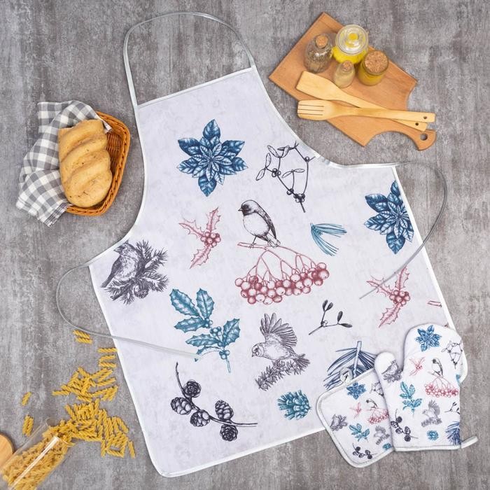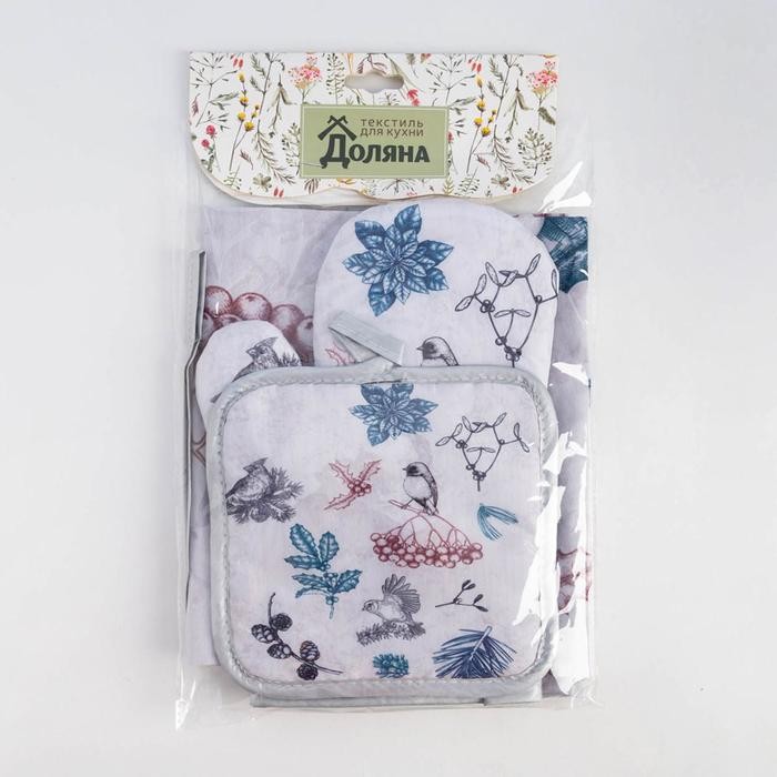 Кухонный набор Доляна «Рябина», прихватка 17*17см, рукавица 26*16см, фартук 70*80 см 100% п/э
