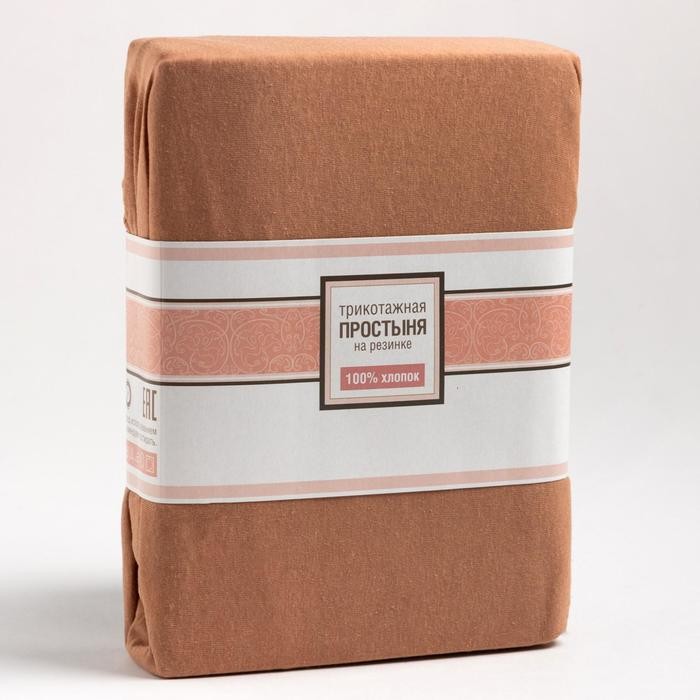 Простыня на резинке трикотажная, размер 90х200х25см, цвет коричневый, кулирка 120г/м², 100% хлопок