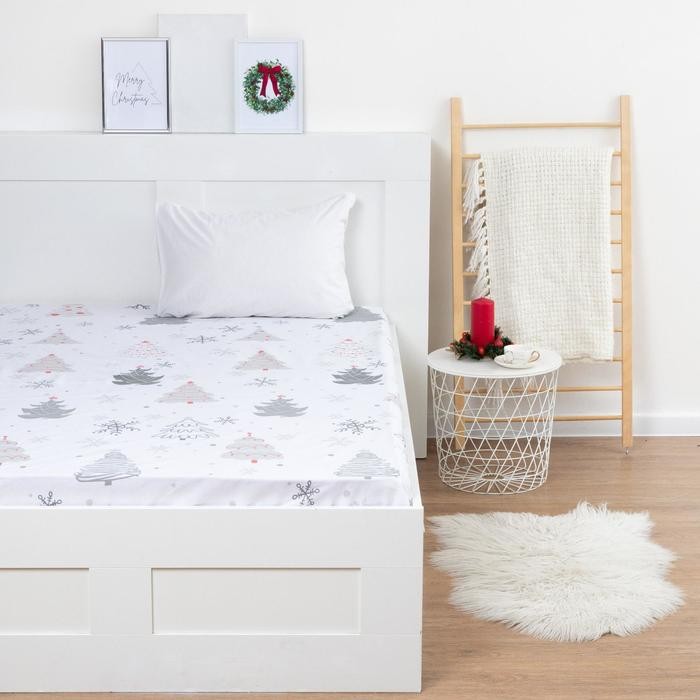 Простыня на резинке Этель 140*200*25 см «Рождественская ель», 100% хлопок, бязь, 125 гр/м2