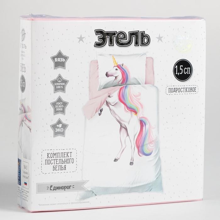 Постельное белье Этель 1,5 сп «Единорог» 143×215 см, 150×214 см, 50×70 см -1 шт