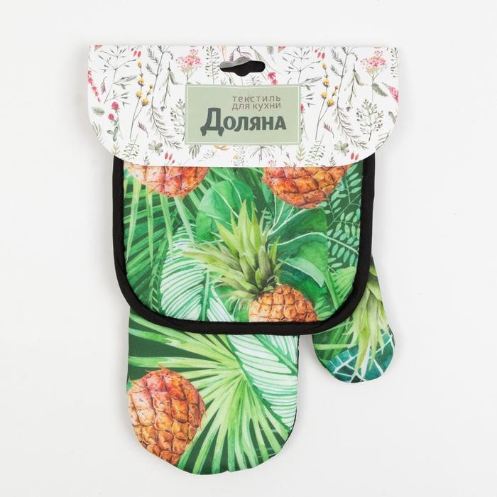 Кухонный набор Доляна «Ананасы» прихватка 17*17 см, варежка-прихватка 26*16 см, 100% п/э