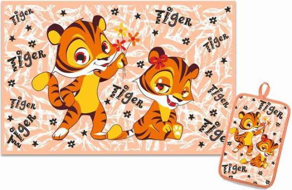 Кухонный набор Романтик (полотенце 39×60+прихватка 14,5×22), тем-персик, хлопок 100%, 200г/м