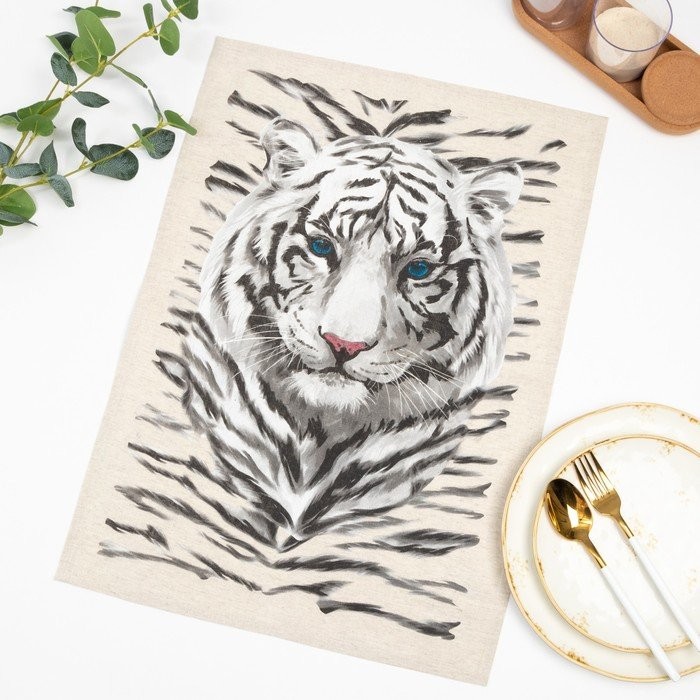 Полотенце Снежный тигр 45×60 см, лен 50%, хлопок 50%, 160г/м2