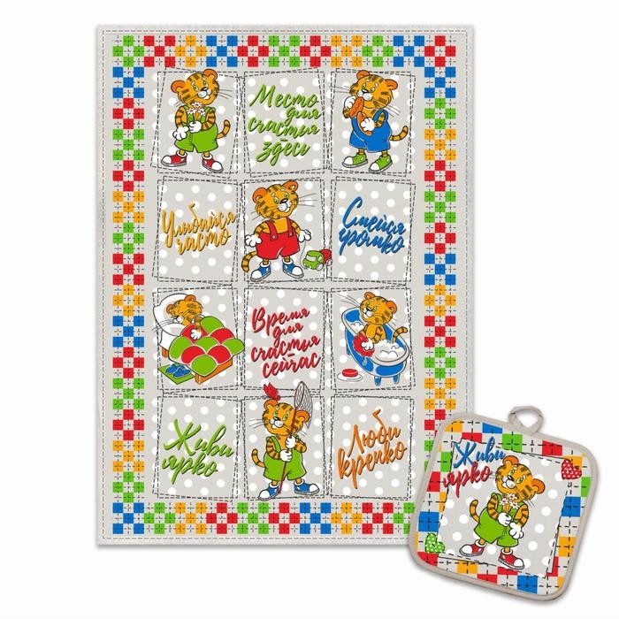 Кухонный набор Счастье это просто (полотенце 45×60+прихватка 18×18) лен 50%, хл 50%, 160г/м2