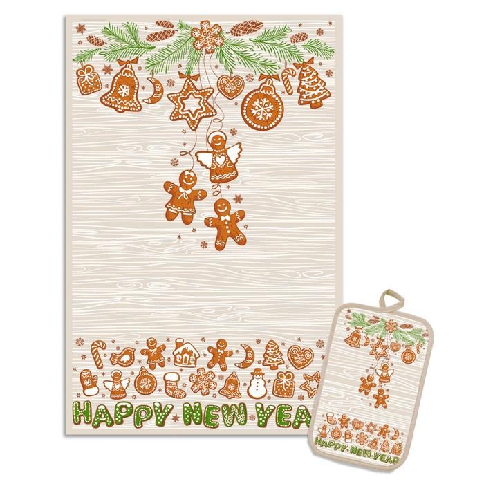 Кухонный набор Печеньки (полотенце 39×60+прихватка 14,5×22), беж, хлопок 100%, 200г/м2