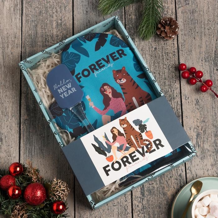 Новогодний набор подарочный Forever варежка-прихватка, лопатка силикон