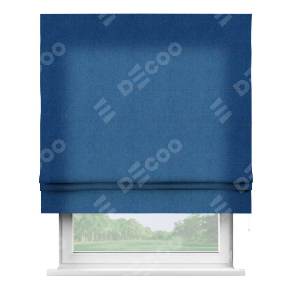 Римская штора производителя «Cortin», используется для проёма, пошита из ткани вельвет синий, артикул ткани 85554. Имеет универсальный механизм и подходит для монтажа: на потолок, на стену и в нишу.