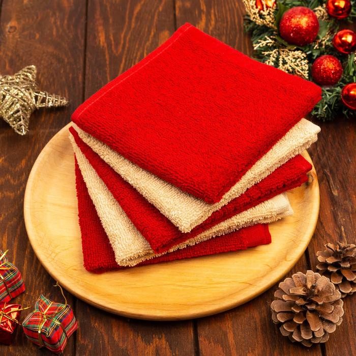 Новогодние полотенца (подарочный набор 5 шт.) Этель Happy holidays 30×30 см, 100% хл, 340гр/м2