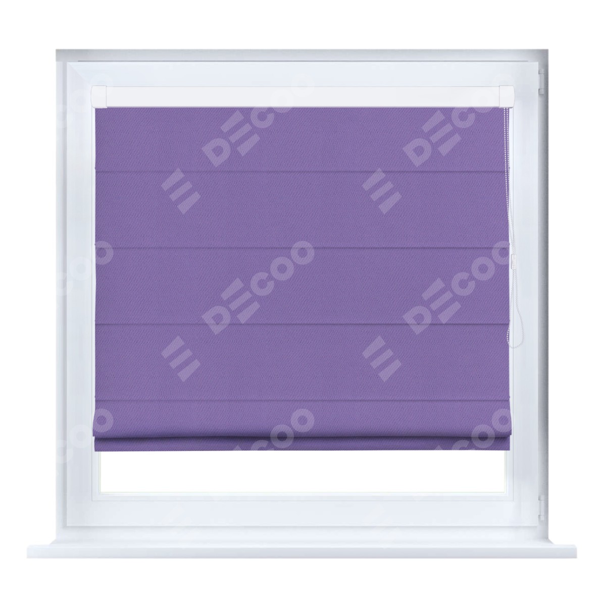 Римская штора кассетного типа, производителя «Cortin», устанавливается только на пластиковые окна и прилегает к стеклопакету, пошита из ткани блэкаут однотонный сиреневый, артикул 88305.