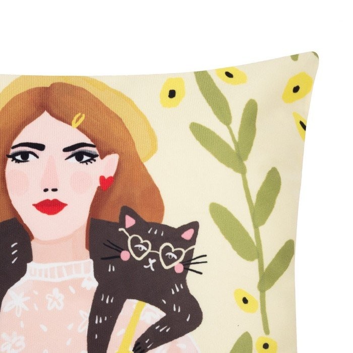 Наволочка Этель «Девушка с котом» 40×40 см, 100% п/э, велюр