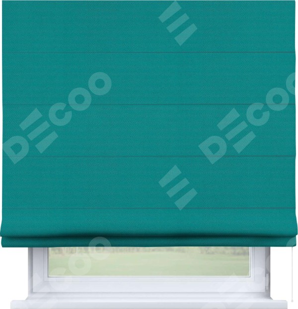 Римская штора производителя «Cortin», используется для проёма, пошита из ткани блэкаут однотонный бирюзовый, артикул ткани 88297. Имеет универсальный механизм и подходит для монтажа: на потолок, на стену и в нишу.