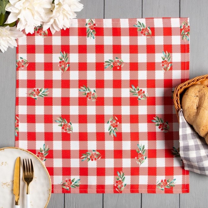 Набор салфеток Этель «Red flowers» 46×46 см — 4шт., 100%хл, саржа 190 г/м2