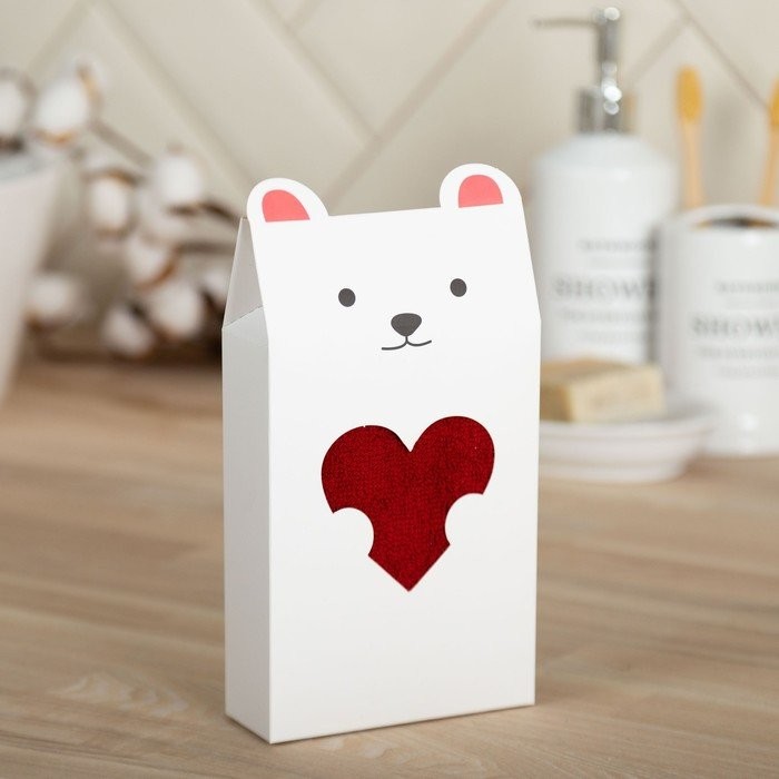 Полотенце подарочное Экономь и Я «Мишка» 30*60 см, бордовый, 100% хл, 320 г/м2