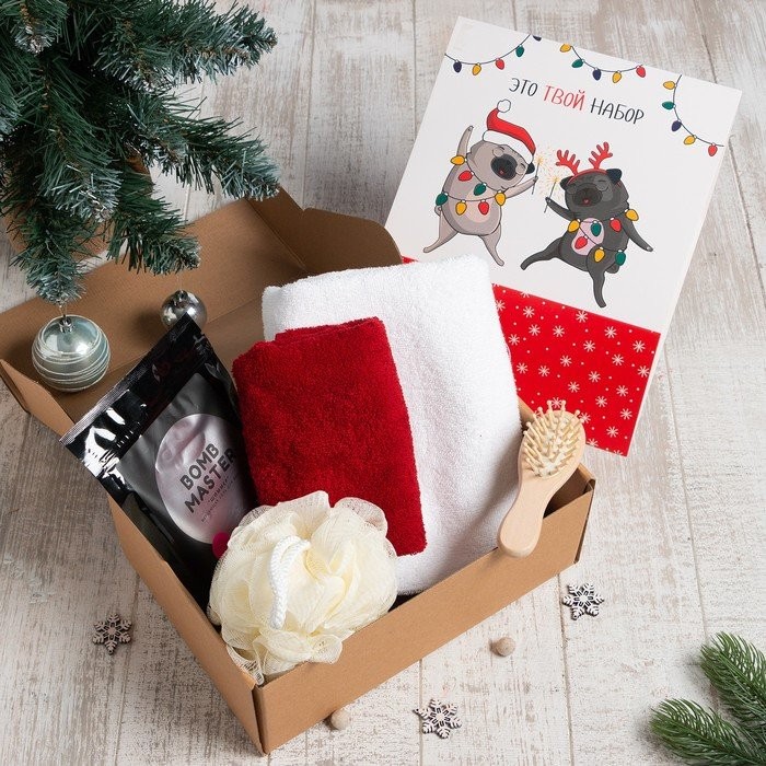 Набор подарочный Этель «Твой набор» полотенце 50х90см,30х60см и аксс (5 предм)