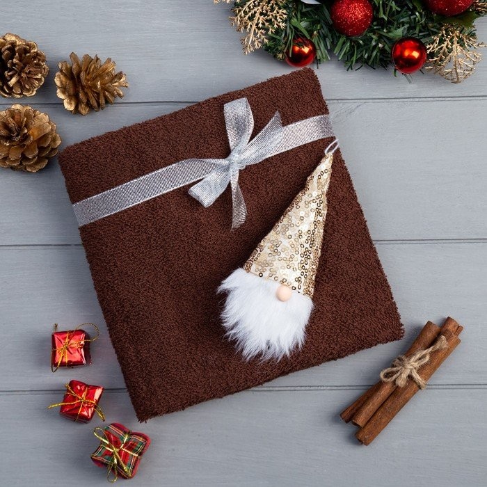 Подарочное полотенце с игрушкой Этель «Гномик» 50*90 см, цв.коричневый, 100% хл, 320г/м2