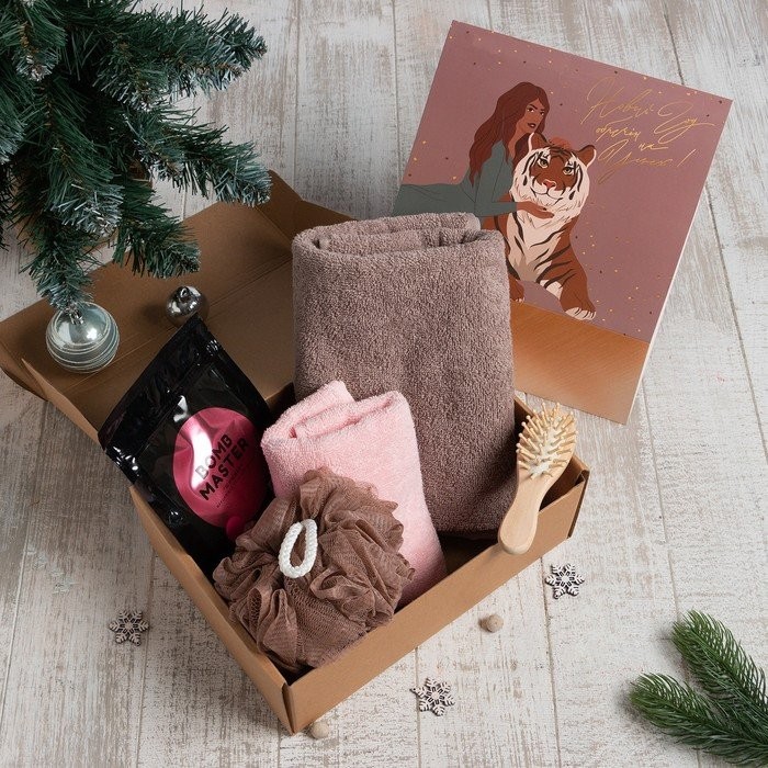 Новогодний набор подарочный Этель «Новый год» полотенце 50×90 см, 30×60 см и аксессуары (5 предм)