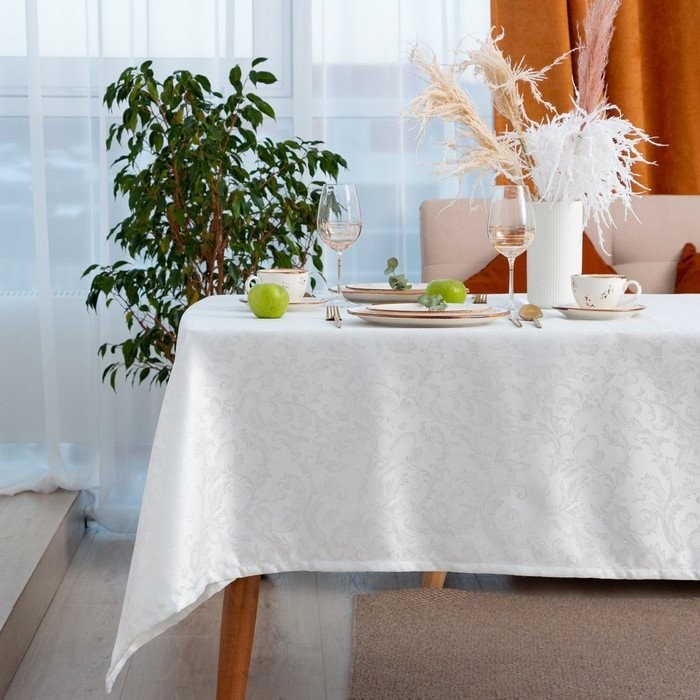 Скатерть Этель «Venzel» цв.серебро, 142*180 +/-3 см, 115 ±10 гр,100% п/э