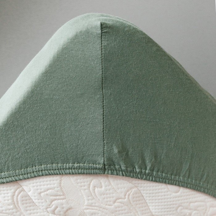 Простыня на резинке трикотажная, размер 200х200х25см, цвет хаки, кулирка 120г/м², 100% хлопок
