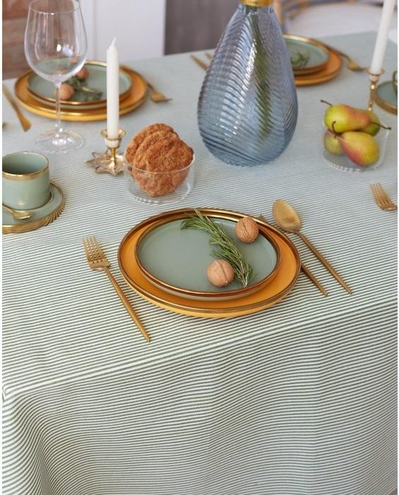 Скатерть Доляна 145х145см, Зеленая полоска, 100%пэ, рогожка 200 гр/м