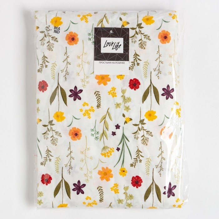 Простыня на резинке LoveLife 180*200*25см, «Цветочная поляна», 100% хлопок, сатин, 125г/м²