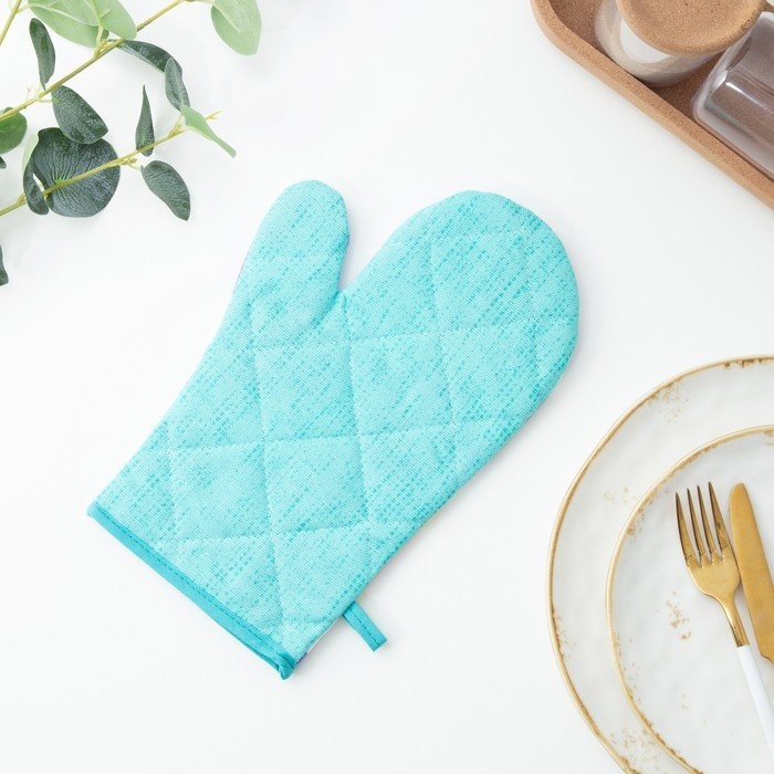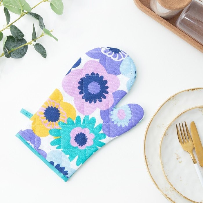 Прихватка-руковичка Мари Санна Цветы+бирюза, рогожка