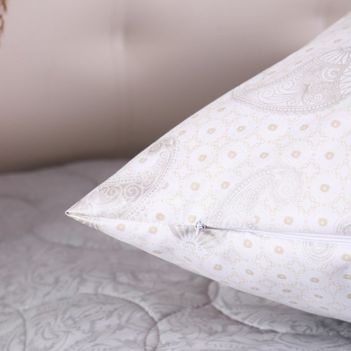 Нижняя наволочка 70х70см на молнии Огурцы серебро №2 (белый), тик 90г/м, пэ70%,хл30%
