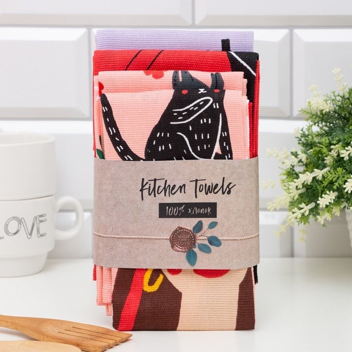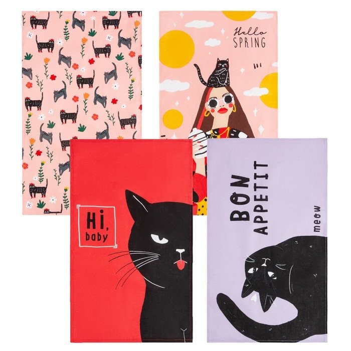 Набор кухонных полотенец Доляна Hello spring 35х60см-4шт, 100% хл
