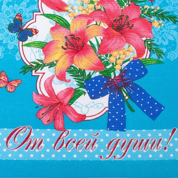 Полотенце 45×60 см, Лилия, бирюза, вафля, 160 гр/м2, хлопок 100%