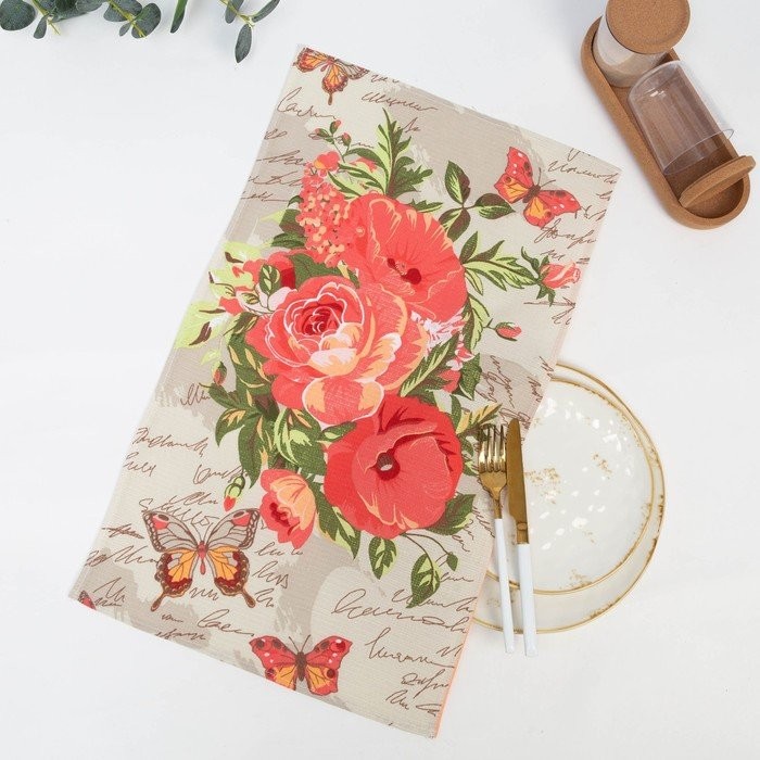 Полотенце в коробке 35×60 см, Букет розы-маки, вафля, 160 гр/м2, хлопок 100%