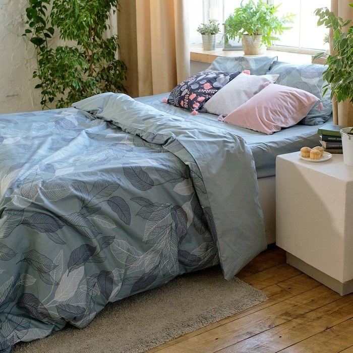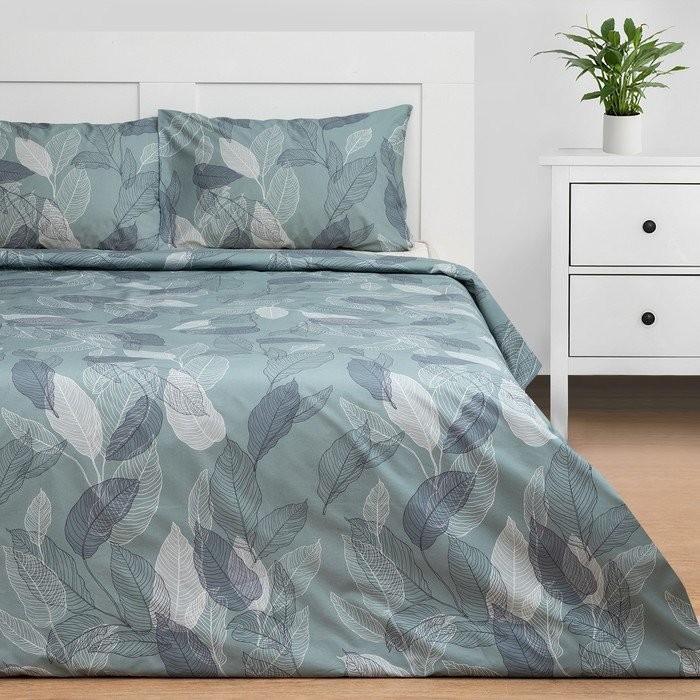 Постельное бельё Этель 1,5 сп Mint leaves, пододеяльник 143×215 см, наволочки 50×70 см 2 шт, 100% хлопок