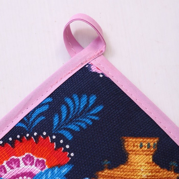 Набор кухонный (Варежка 26*30 см+прихватка 18*18 см) Самовары, синий, рогожка, хл 100%