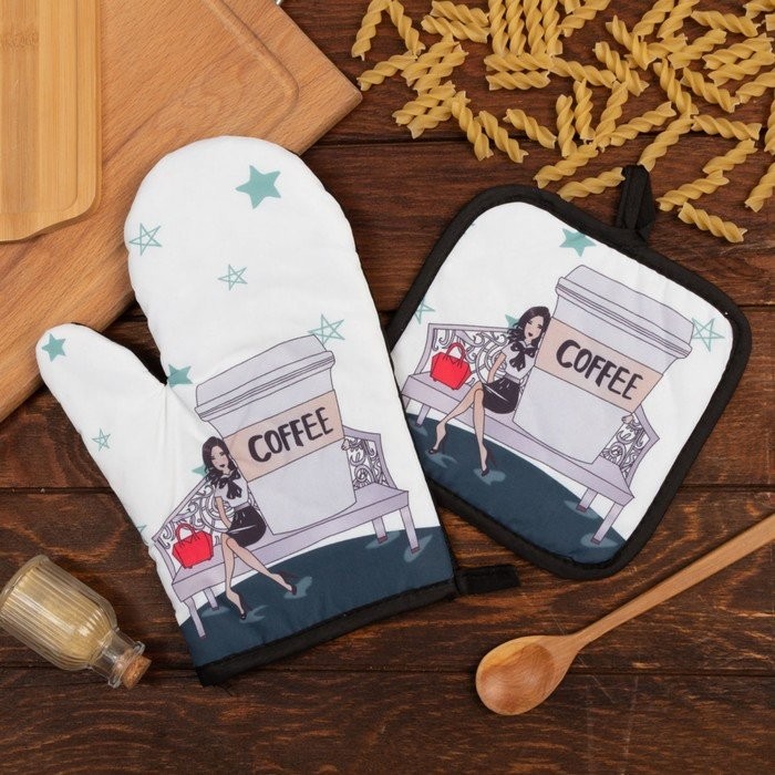 Кухонный набор (2 предмета) Этель LoveLife «Бизнес-леди», прихватка 17×17 см, варежка 26×16 см, 100% п/э