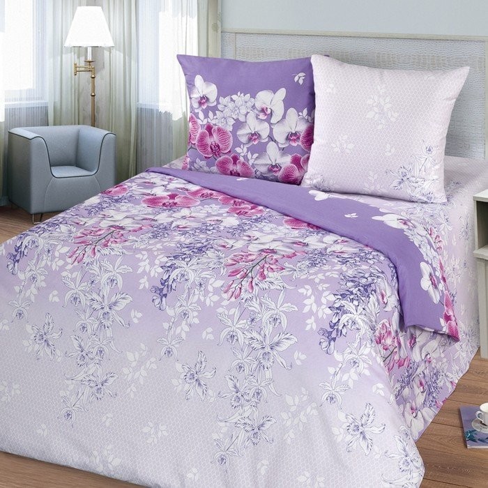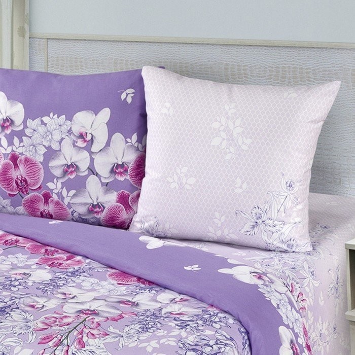 Постельное бельё 1,5сп Миланика Орхидеи 143х215см, 145х215см, 70х70см 2 шт, бязь 125г/м, хлопок 100%