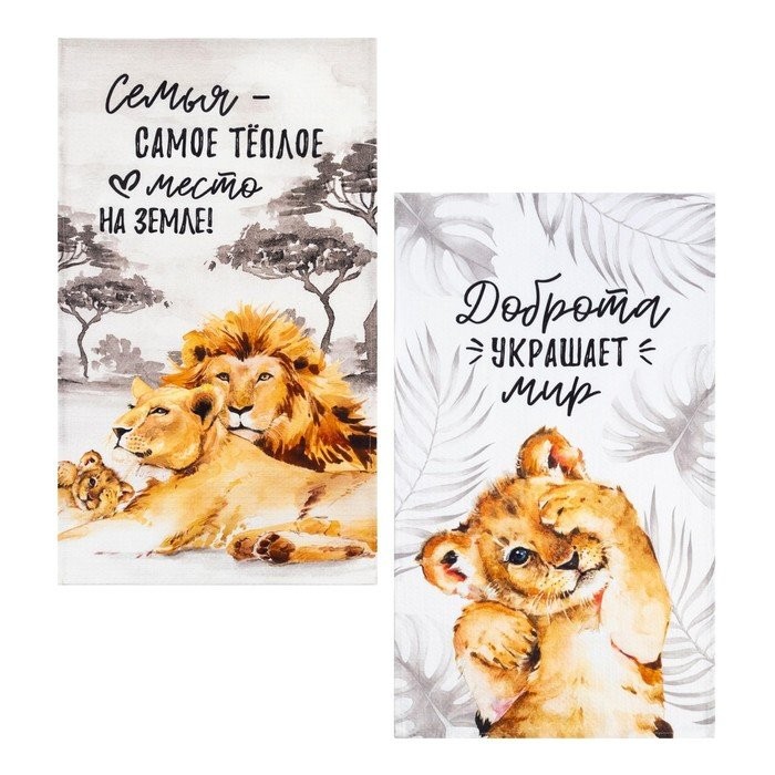 Набор кухонных полотенец Этель «Семья» 40х73см -2 шт, 100% хл, вафля 160 г/м2