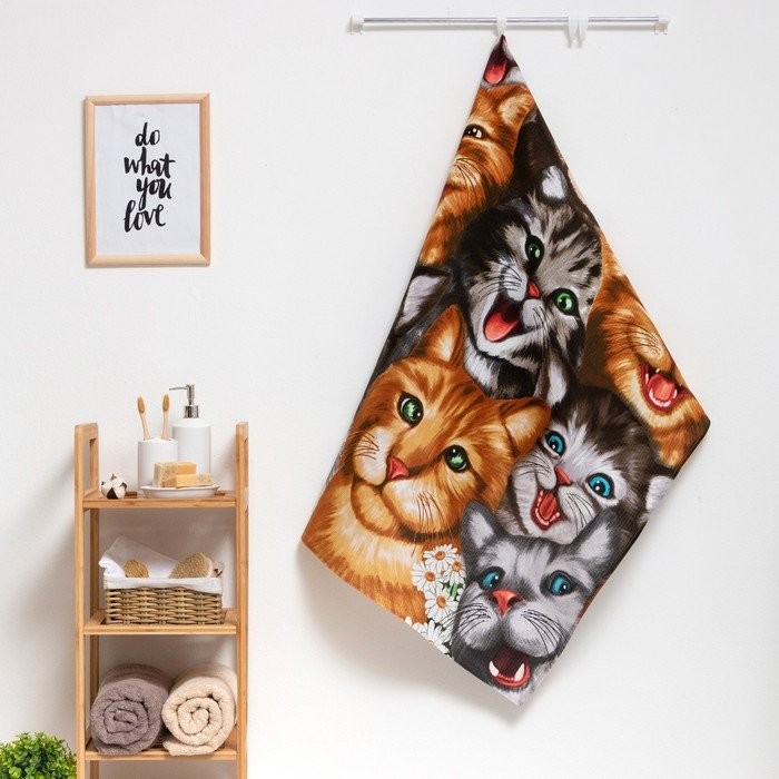 Полотенце-Панно Котофей № 35026, 80×150 см, вафельное, хлопок 100%, 170г/м2
