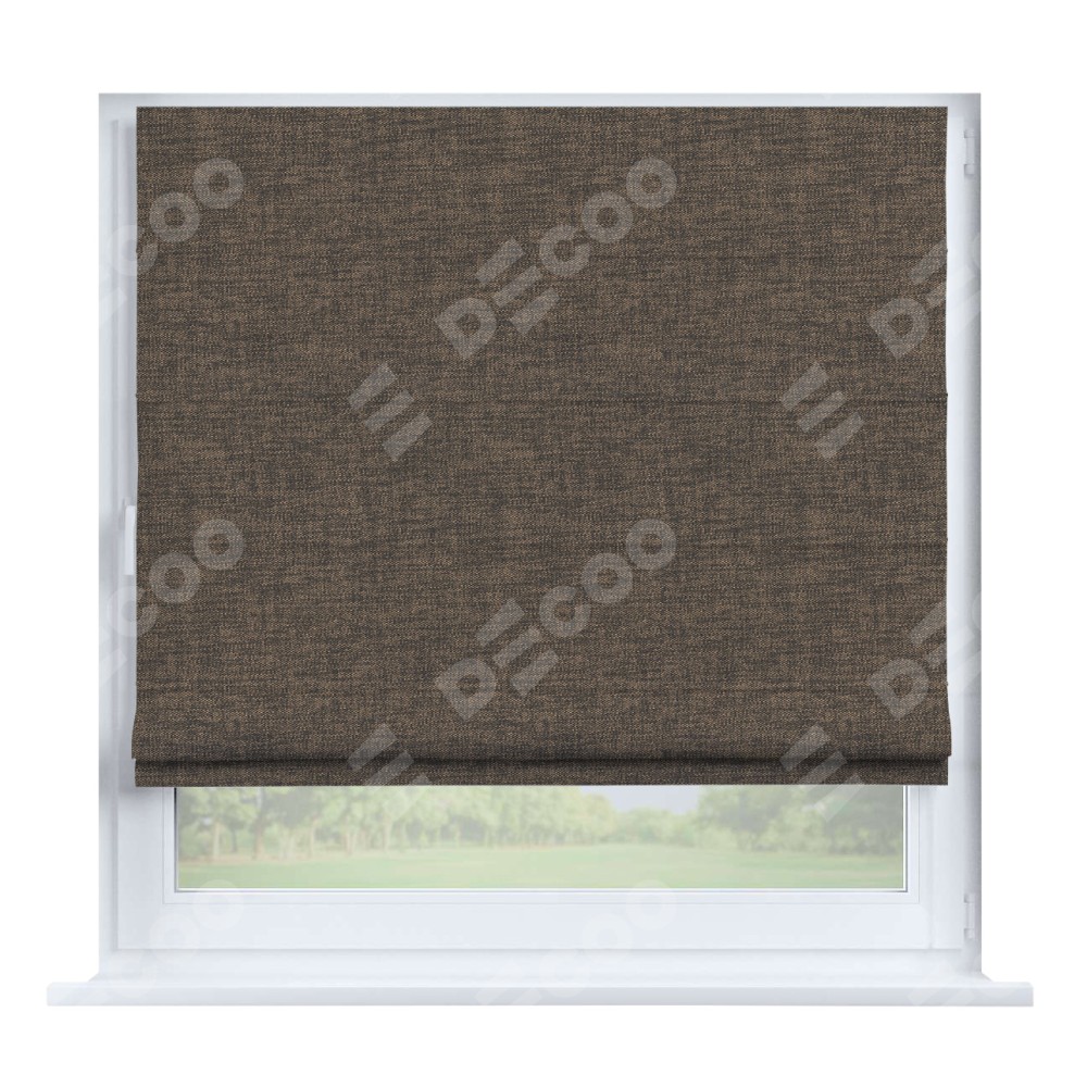 Римская штора производителя «Cortin», устанавливается на створку окна, пошита из ткани рогожка димаут коричневый, артикул 80420. Штора шьётся по индивидуальным размерам, для данного типа римской шторы возможная ширина от 35 до 150 см., высота до 250 см.