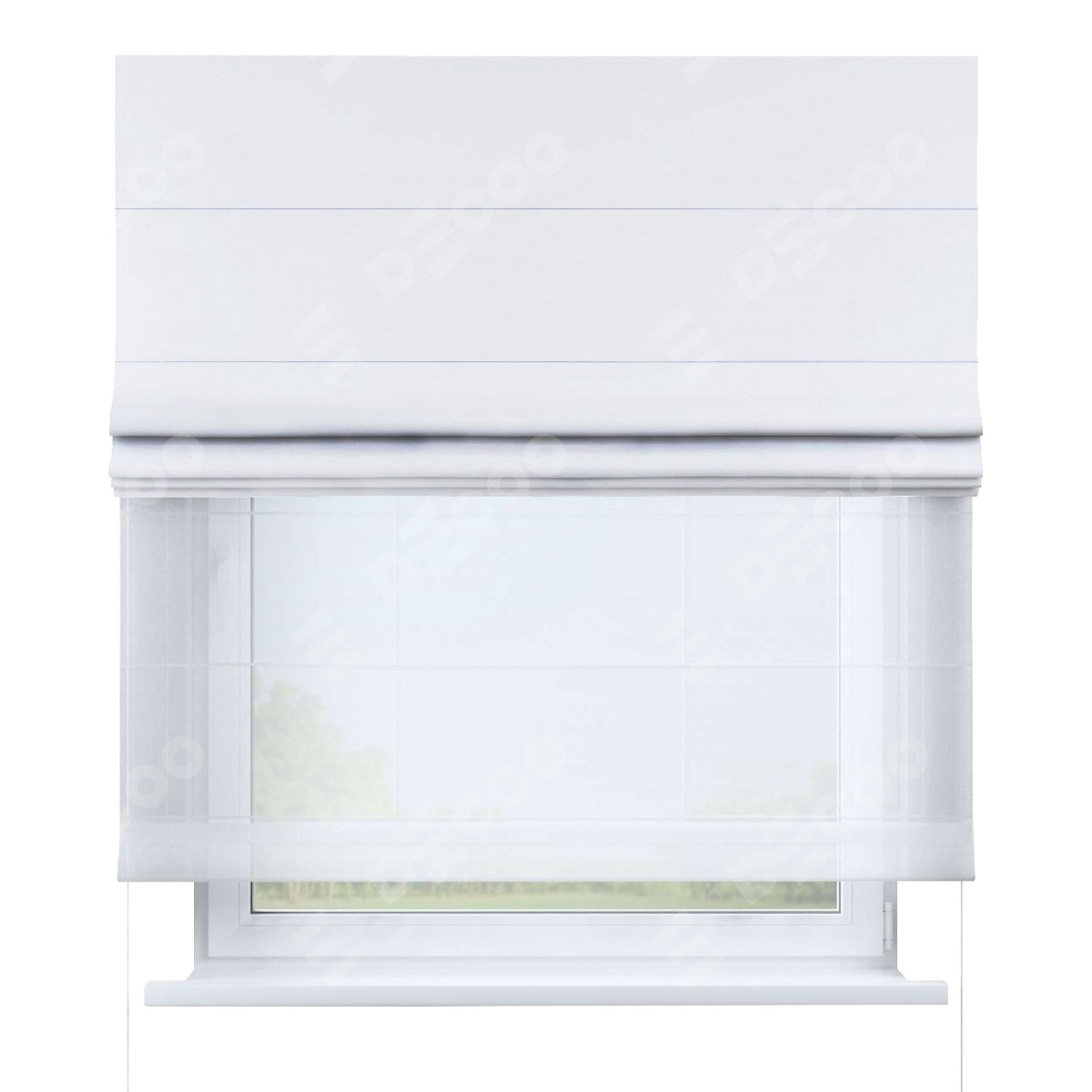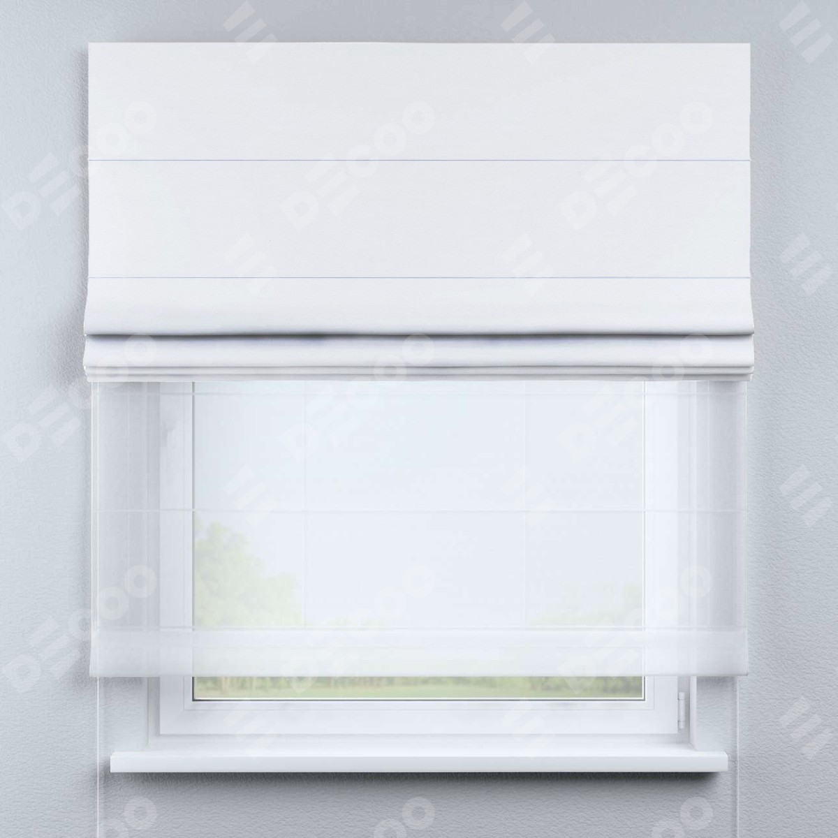Римская штора день-ночь производителя «Cortin», используется для проёма, пошита из двух полотен, с лицевой стороны вельвет дымчато-белый артикул 85535, вторая ткань тюль (по стандарту комплектуется тюль белого цвета артикул V-01). Имеет универсальный механизм и подходит для монтажа: на потолок, на стену и в нишу.