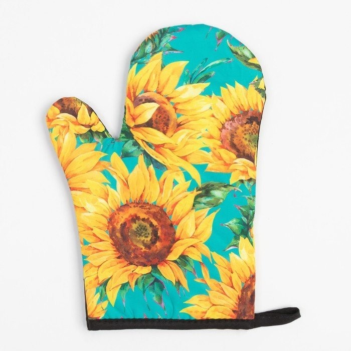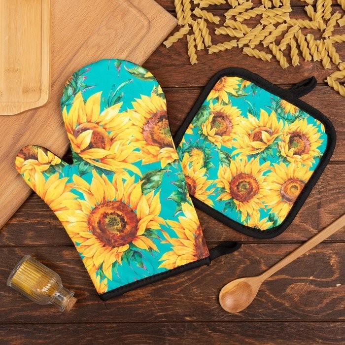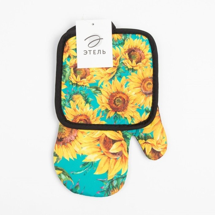 Кухонный набор (2 предмета) Этель «Подсолнухи», прихватка 17×17 см, варежка 26×16 см, 100% п/э