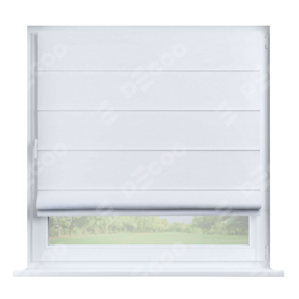 Римская штора производителя «Cortin», устанавливается на створку окна, пошита из ткани вельвет дымчато-белый, артикул 85535. Штора шьётся по индивидуальным размерам, для данного типа римской шторы возможная ширина от 35 до 150 см., высота до 250 см.