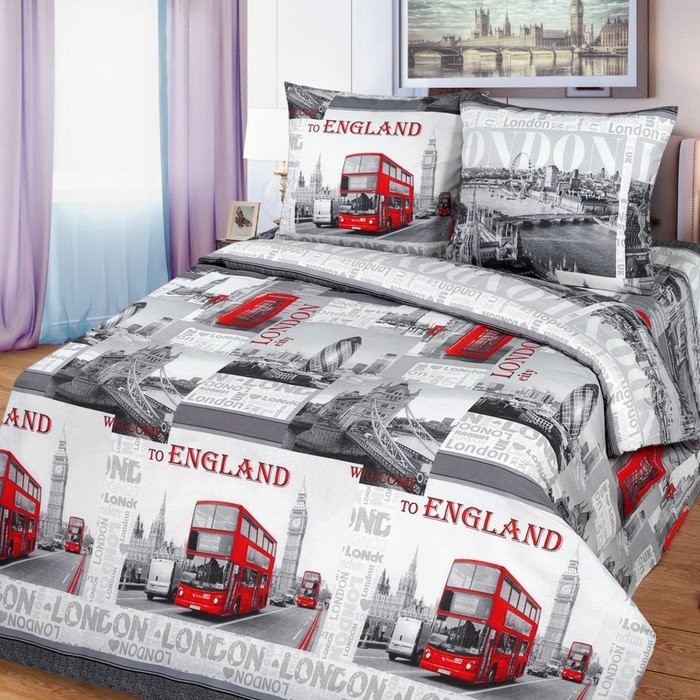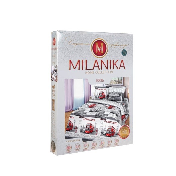 Постельное бельё евро Миланика Лондон 200х217см, 217×240 см, 70х70см 2 шт, бязь 125г/м, хлопок 100%
