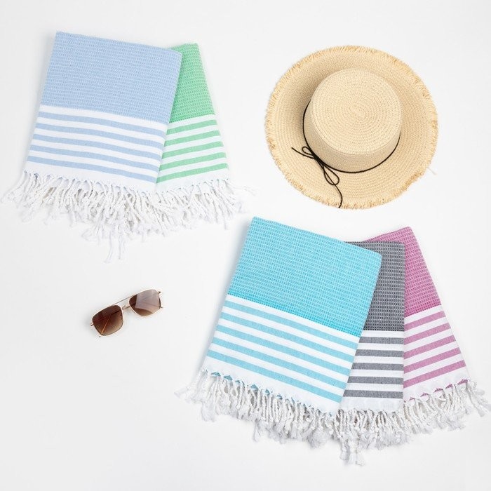 Пештемаль для пляжа, бани, сауны Waffle 100×180 см, голубой