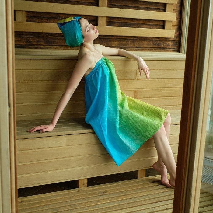 Набор для сауны Экономь и Я «Радуга» (полотенце-парео + чалма) 100%хл, 200 г/м2